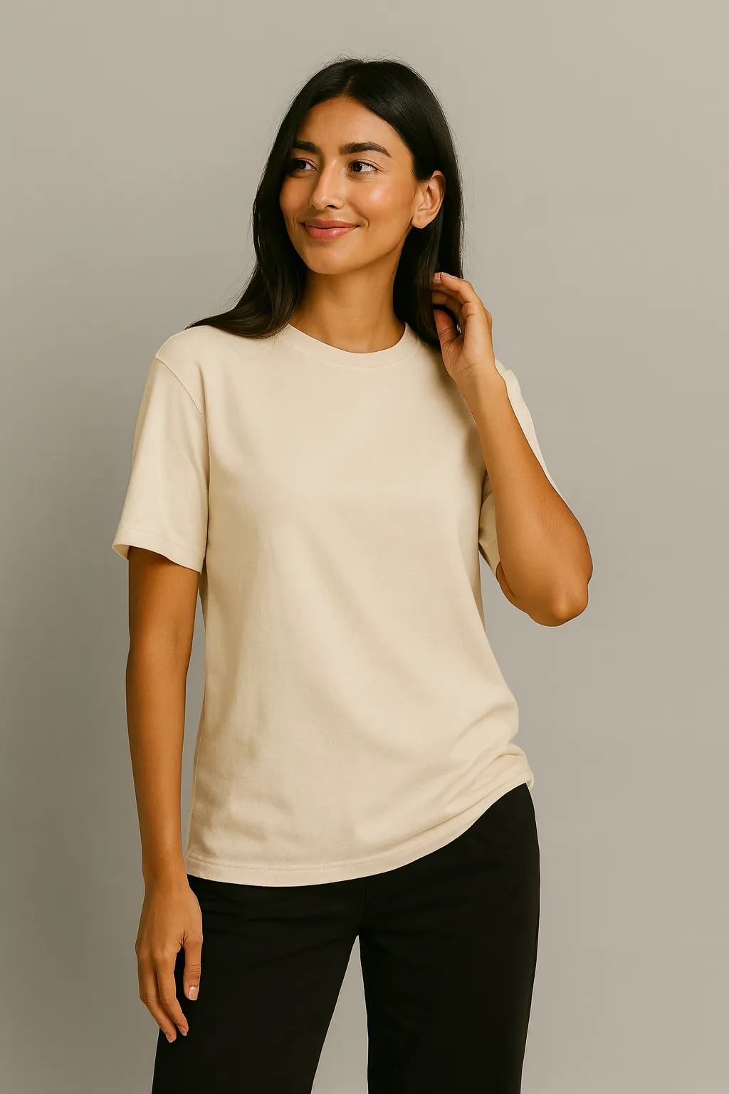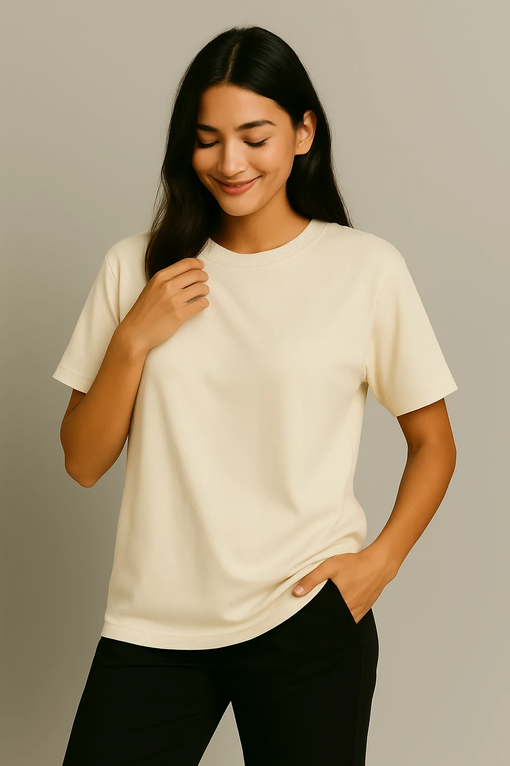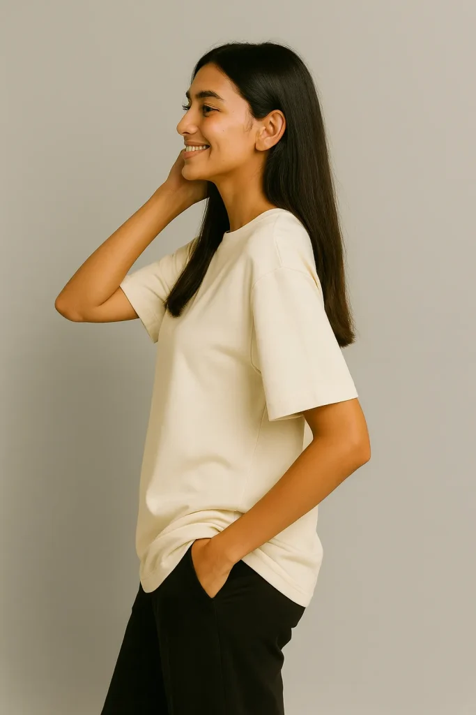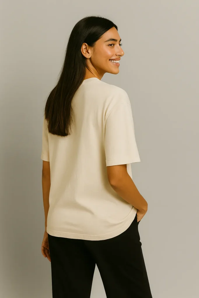 Upgrade your style with this Women’s Cream Oversized T-Shirt, made from soft, breathable cotton for a relaxed fit. Featuring a ribbed crewneck and double-stitched hems, this lightweight tee is perfect for casual wear, layering, or streetwear looks.
