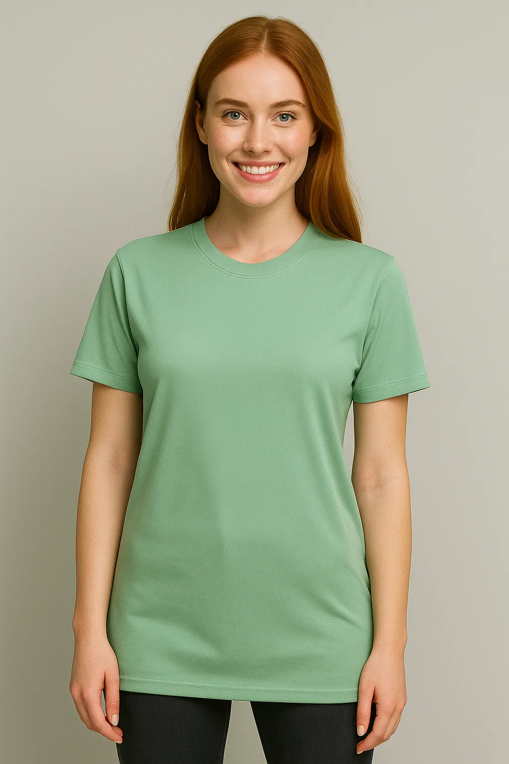 Upgrade your wardrobe with this Women’s Mint Green Round Neck T-Shirt, made from soft, breathable cotton for a relaxed fit. Featuring a ribbed crewneck and double-stitched hems, this lightweight tee is perfect for streetwear, casual wear, or layering in any season.