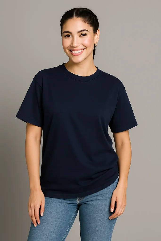 Stay stylish with this Women’s Navy Oversized T-Shirt, made from soft, breathable cotton for ultimate comfort. Featuring a ribbed crewneck and double-stitched hems, this lightweight tee is perfect for streetwear, casual wear, or layering in any season.