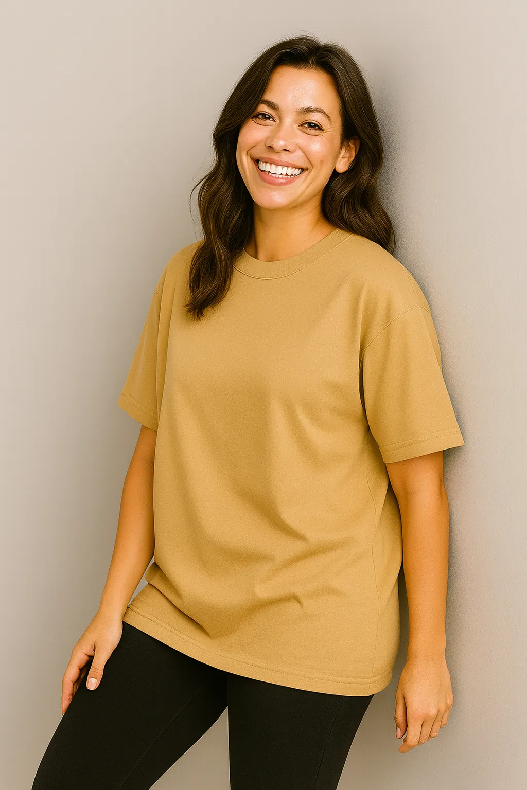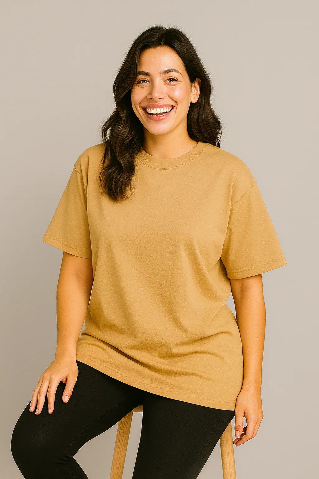 Stay stylish with this Women’s Beige Oversized T-Shirt, made from soft, breathable cotton for ultimate comfort. Designed with a ribbed crewneck and double-stitched hems, this lightweight tee is perfect for casual wear, layering, or a trendy streetwear look.