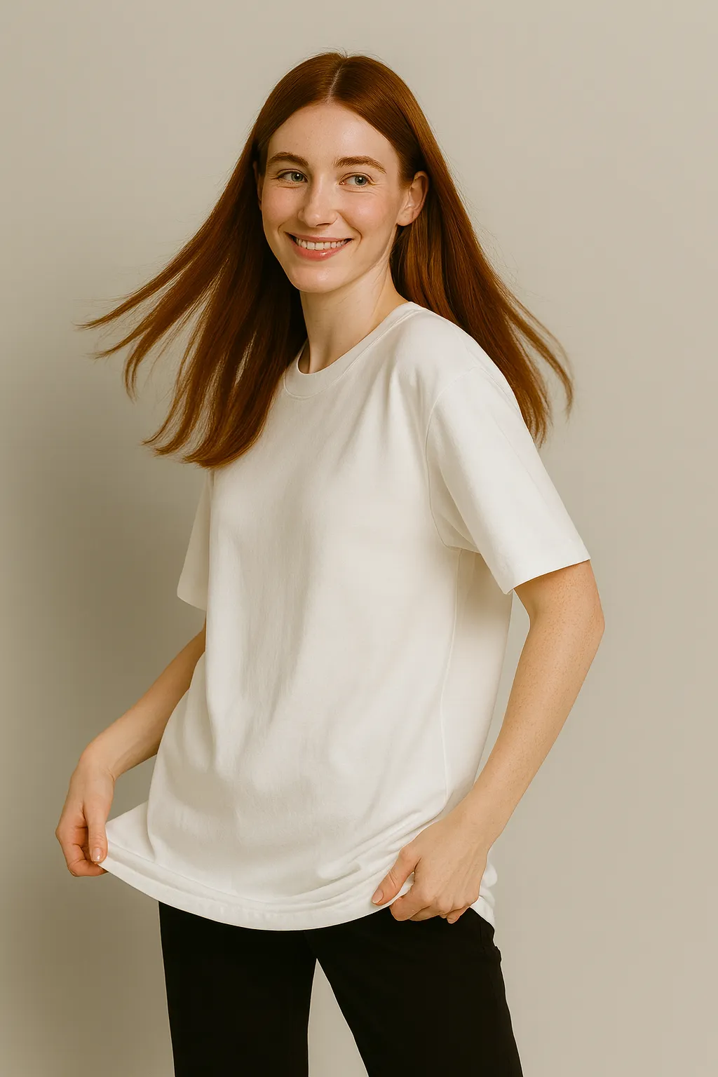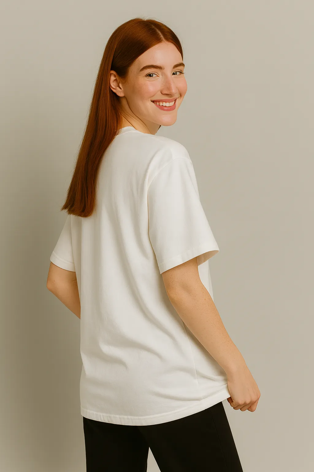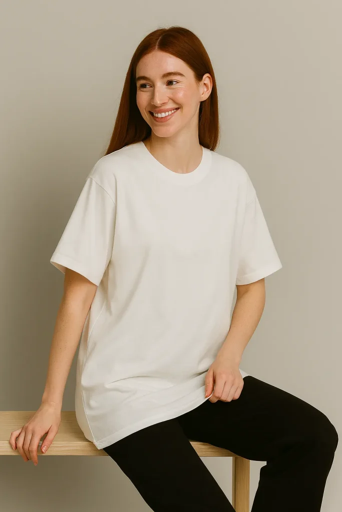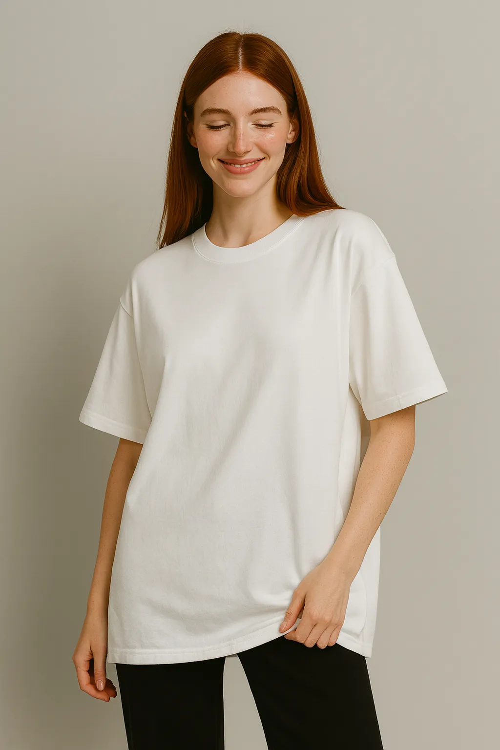 Upgrade your style with this Women’s White Oversized T-Shirt, made from soft, breathable cotton for a relaxed fit. Featuring a ribbed crewneck and double-stitched hems, this lightweight tee is perfect for casual wear, layering, or streetwear looks.